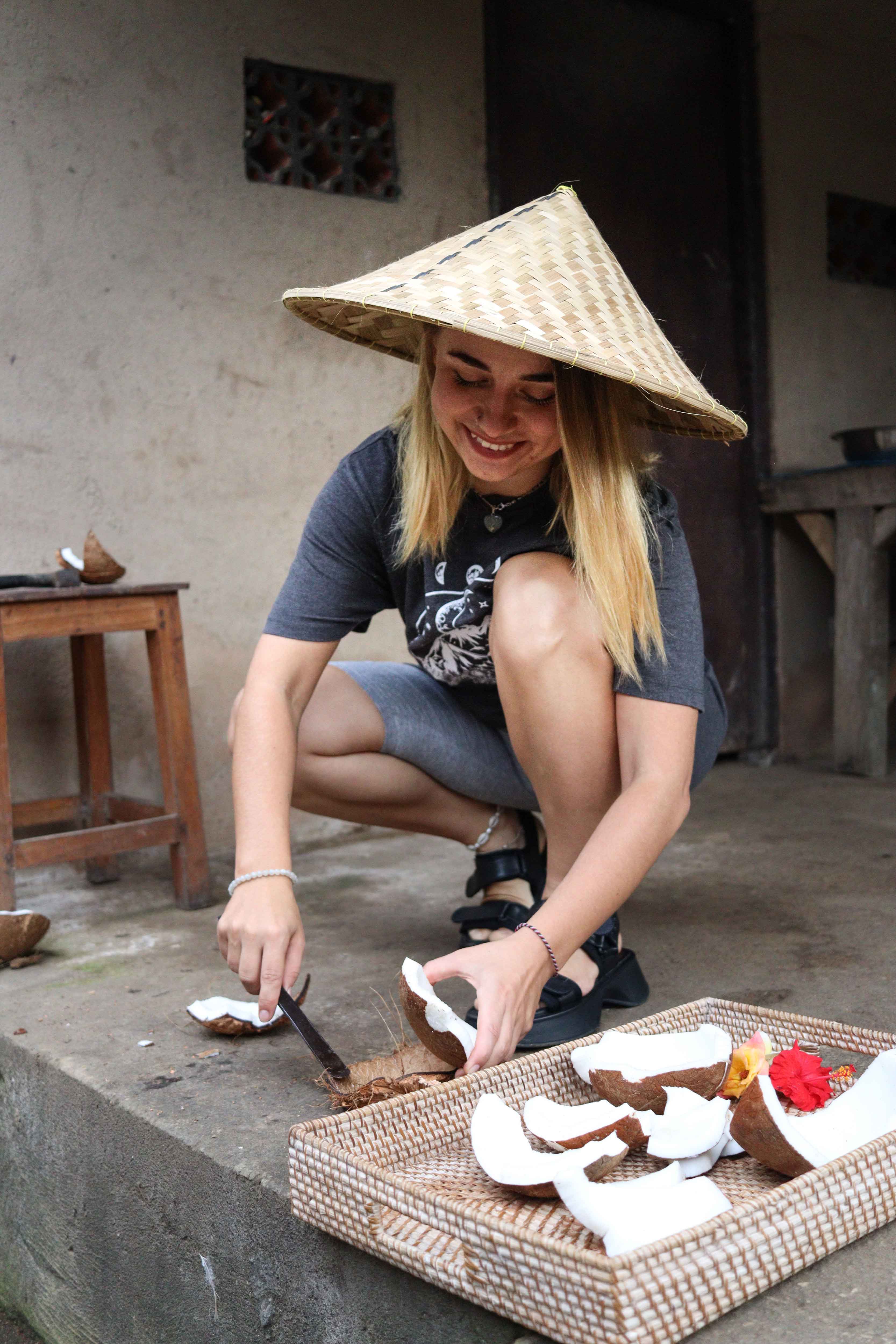 In Balinese tradition, pounding rice is called Ngoncang. In Balinese, Ngoncang comes from the word "gaguncangan" which means boisterous. Based on how clearly or loudly the sound made while striking the pestle in the mortar is created.
